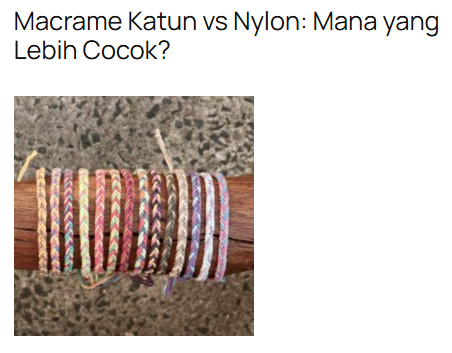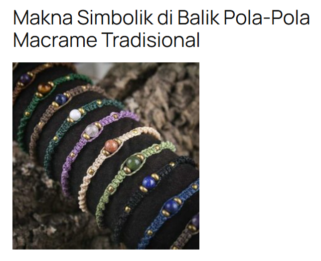 Setiap gelang dan dekorasi macrame kami dibuat dengan hati, dari bahan alami dan tangan-tangan yang penuh kesabaran.
